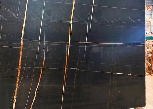 Laurent Gold Marble is featuring a deep black background with white and golden veining. Its striking appearance, versatility, and durability make it a popular choice for adding a touch of sophistication and luxury to various architectural and design applications.