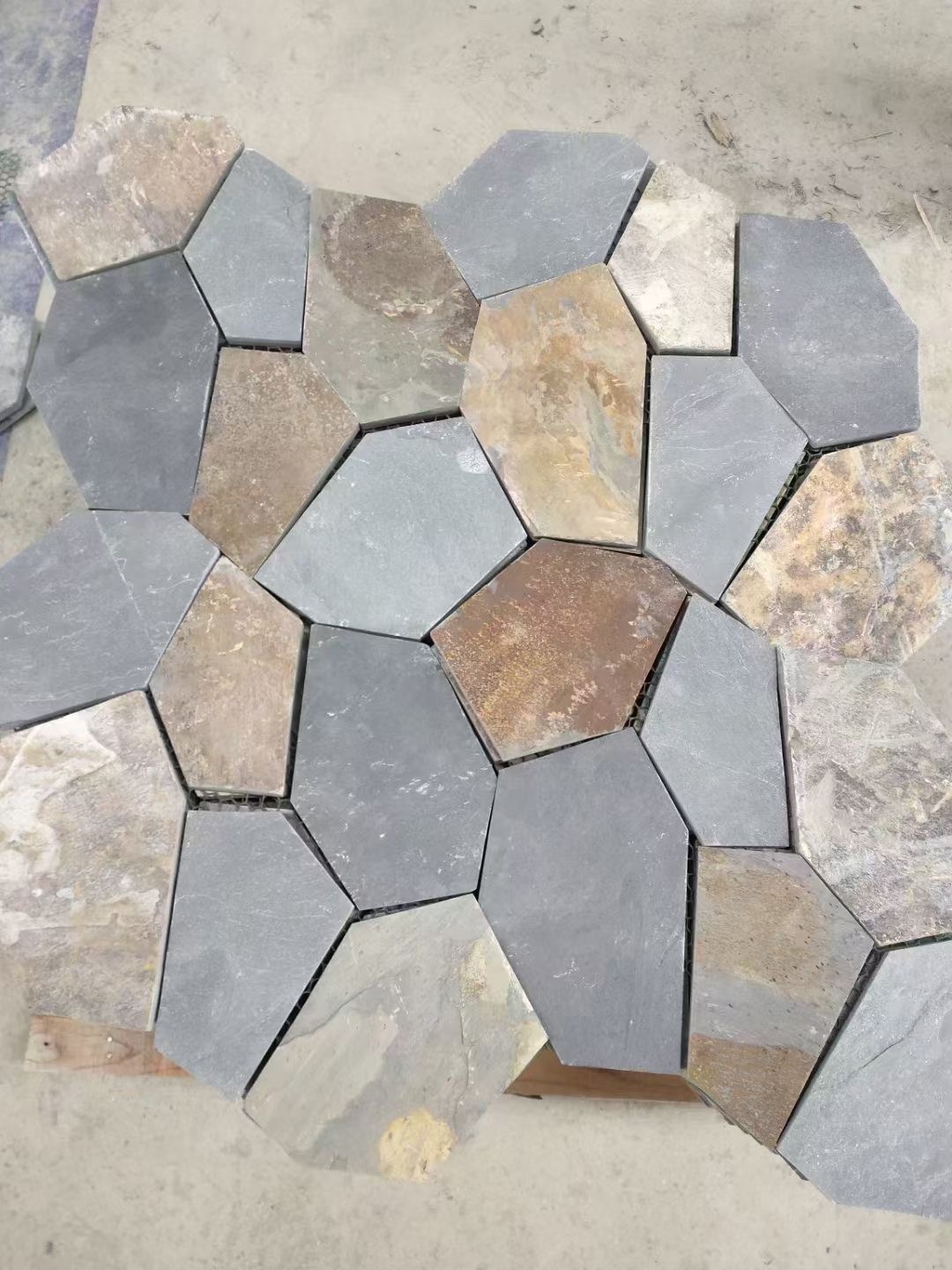 Transform your outdoor space with these vibrant Crazy Paving Stones, featuring a dynamic mix of granite in warm grays, deep charcoals, and earthy browns. Each irregular hexagonal piece showcases nature's artistry through unique mineral veining and textured surfaces. Weather-resistant and slip-proof, these durable stones create eye-catching pathways, patios, or garden accents, blending organic charm with timeless functionality for landscapes that tell a story.