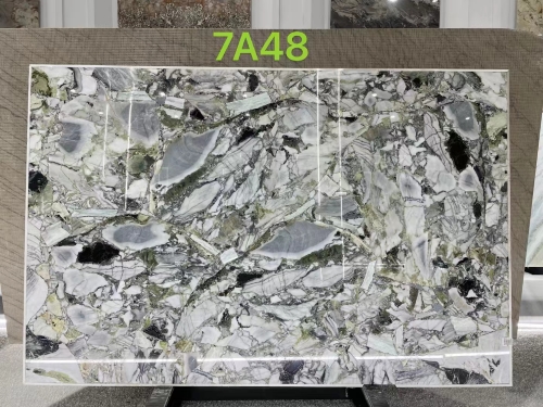 Ice Green Marble, also known as Ice Green Marble, is a unique variety of marble from China. It is known for its vivid combination of green, black, grey and white, with a chaotic and fascinating texture on the surface. The interlaced veins, patches and cracks make it a very unique stone.